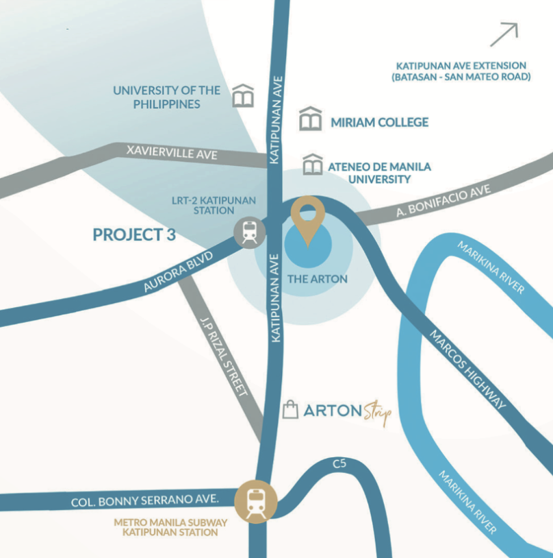 The Artonは、マニラ首都圏のケソン市・Katipunanエリアに位置しています。
